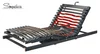 Der Rahmen bietet ein sehr gutes Preis-Leistungs-Verhältnis. Die geschwungenen Schulterleisten ermöglichen ein tiefes Eintauchen in der Seitenlage. Die Mittelzone lässt sich auf die Wirbelsäulenform und Wunschfestigkeit einstellen, dies erfolgt mittels arretierbarer MZV-Schieber. Der Rahmen verfügt über eine besonders komfortable Schulterzone. Das Kopfteil ist manuell verstellbar, das lange Rückenteil, das Fußteil und die individuelle Unterschenkelverstellung sind durch 3 Elektromotoren unabhängig voneinander verstellbar, über die Funkfernbedienung können Sitz- und Liege-Positionen gespeichert und abgerufen werden. Der Motorrahmen verfügt über eine Netzfreischaltung und Notabsenkung bei Stromausfall.